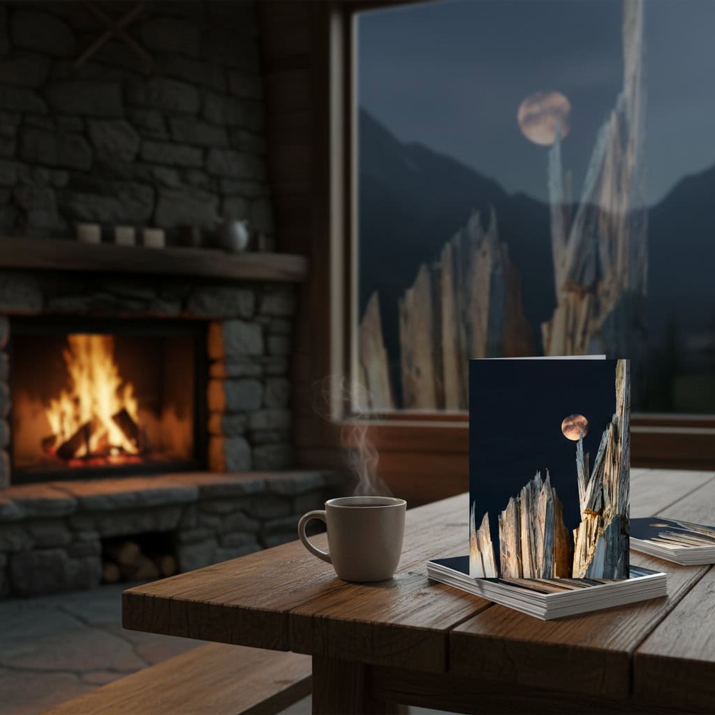 Carte de vœux au format rectangulaire  au format portrait La partie intérieure de gauche est partiellement occupée par la description de l'œuvre telle que présentée lors des expositions.